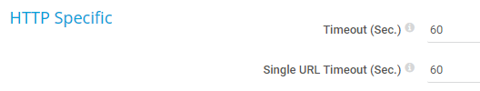 Enter a timeout in seconds for one single HTTP request. Enter an integer. The maximum value is 900 seconds (15 minutes).