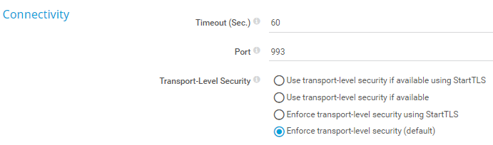 • Use transport-level security if available: Try to connect to the server via an SSL/TLS-secured connection. If the server does not support this, the sensor tries to connect without connection security.
