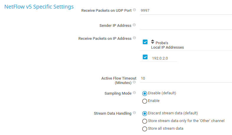 Enter the IP address of the sending device that you want to receive the NetFlow from. Enter an IP address to only receive data from a specific device or leave the field empty to receive data from any device on the specified port.