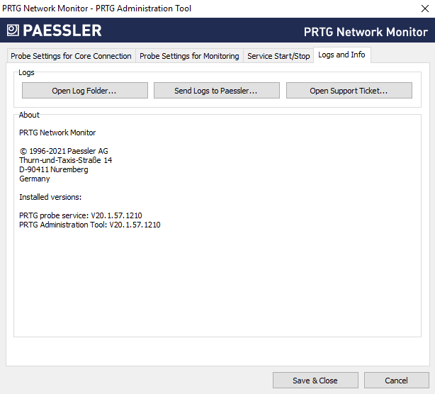 If you open a support ticket, the Paessler support team might ask you to send logs for further analysis.