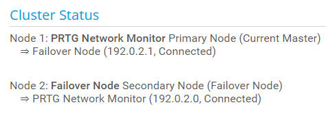 This setting is only visible if you have a failover cluster. This section shows information about the connections between the cluster nodes.